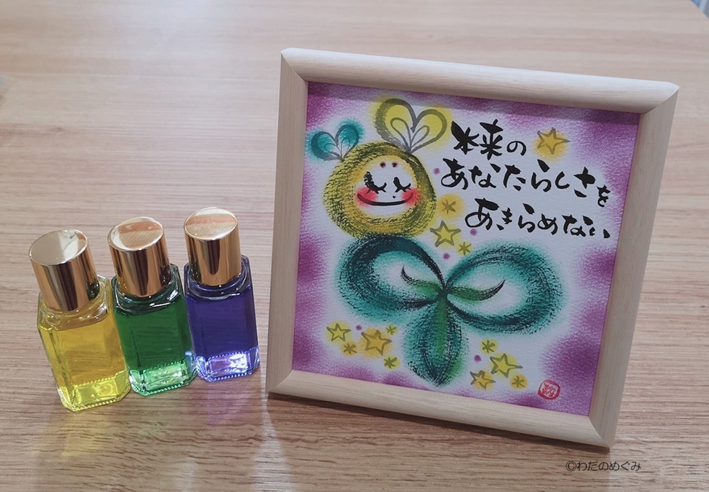 その雑貨や文房具の代わりとして、ヒーリングカラーと今のあなたに必要なメッセージを組み合わせ、 1点ものの原画をお渡ししています。
